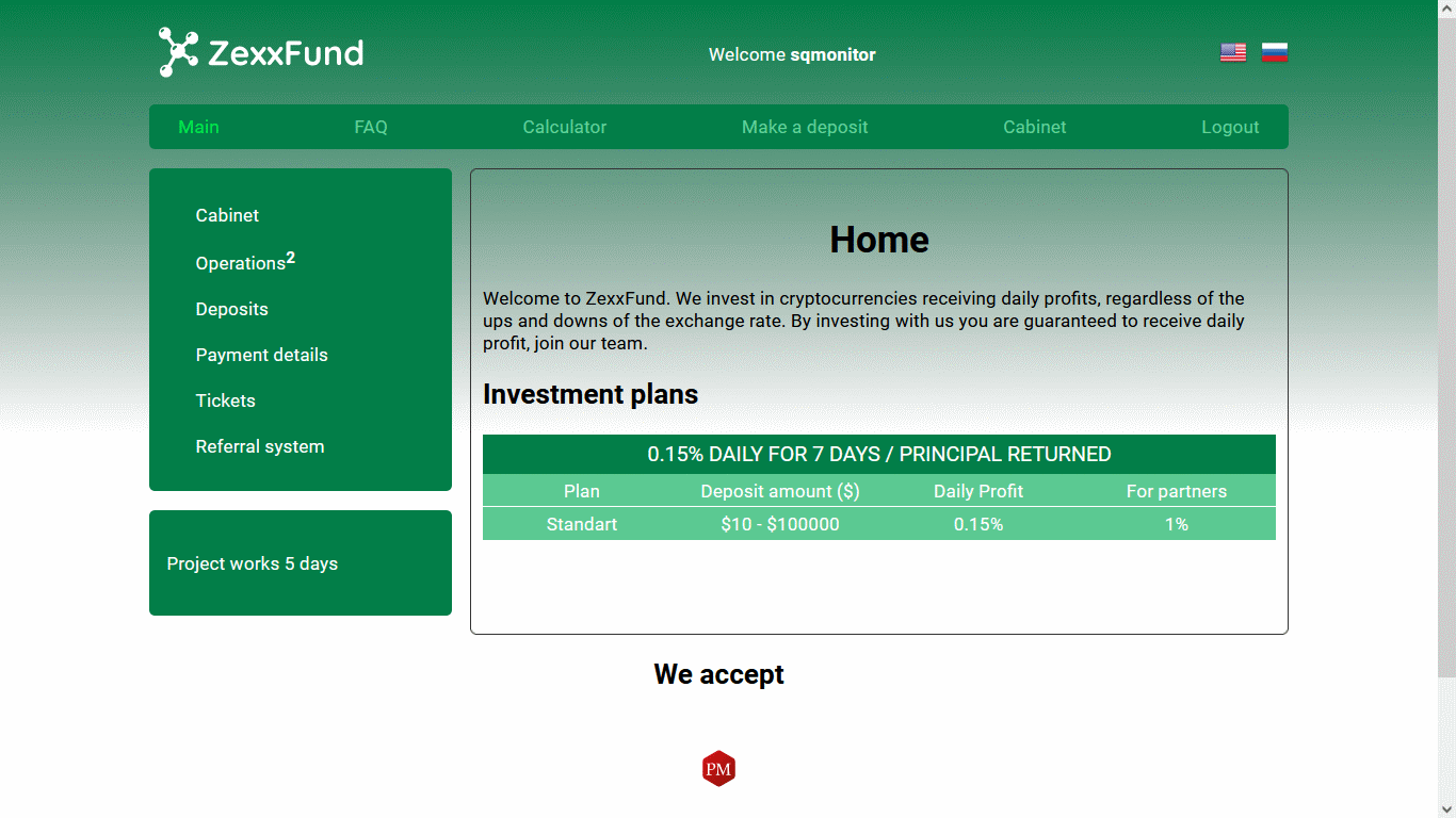 Минимальный вклад: 10$